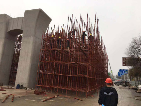 本項目全長1204.559m,其中橋梁全長684m,上跨武陵山大道節(jié)點274m,(4跨:55m+82m+82m+55m),為變高度全鋼箱梁;上跨天崇路節(jié)點橋梁110m(3跨:30m+50m+30m),為變高度預(yù)應(yīng)力混凝土連續(xù)梁;西側(cè)引橋長300m(10跨:10×30m),為等高度預(yù)應(yīng)力混凝土連續(xù)梁。子午橫斷面為50m,橋梁橫斷面為17.5m,該道路為城市主干道,雙向8車道,設(shè)計車速50km/h,橋梁使用年限100年,車行道采用瀝青混凝土路面,設(shè)計合理使用年限15年。
