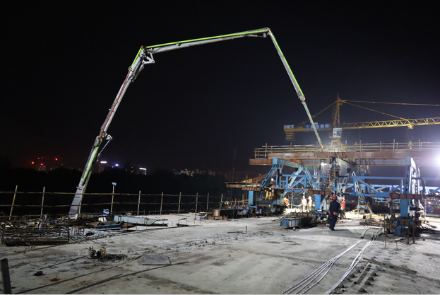 10月24日晚上10點(diǎn)30分至10月25日凌晨2點(diǎn),歷時(shí)三個(gè)半小時(shí),張家界紅壁巖大橋中跨合龍段施工順利完成。此次合龍實(shí)現(xiàn)了紅壁巖大橋主橋貫通,向大橋建成通車邁進(jìn)了重要的一步。目前大橋北岸引橋部分施工正在按計(jì)劃有序推進(jìn),有望于10月底前實(shí)現(xiàn)全橋主體貫通。